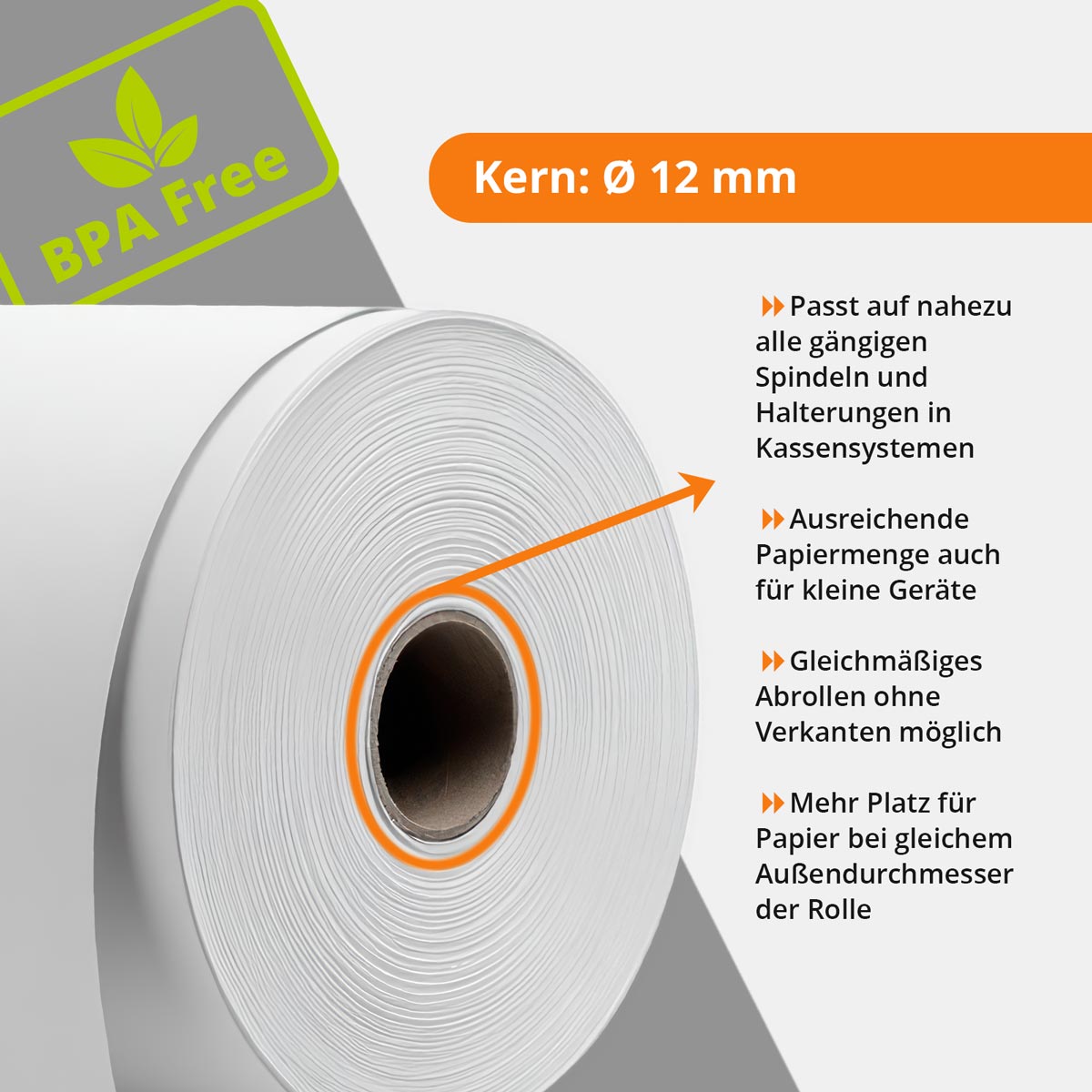 - Durchmesser Rollenkern: Ø 12 mm