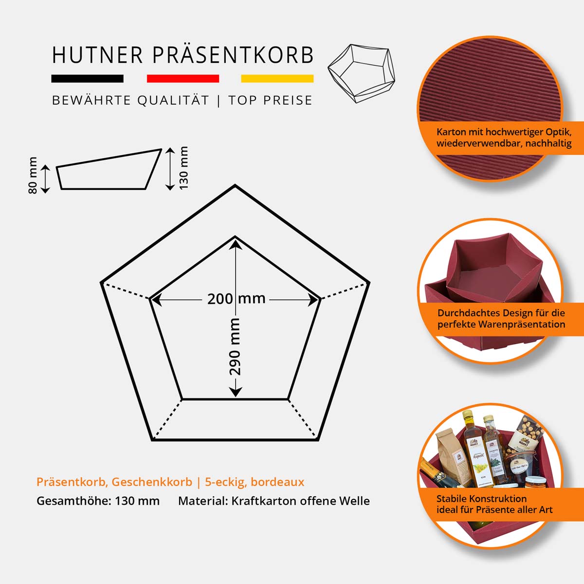 Präsentkorb Geschenkkorb 5-Eck Exklusiv, offene Welle, bordeaux, mittel