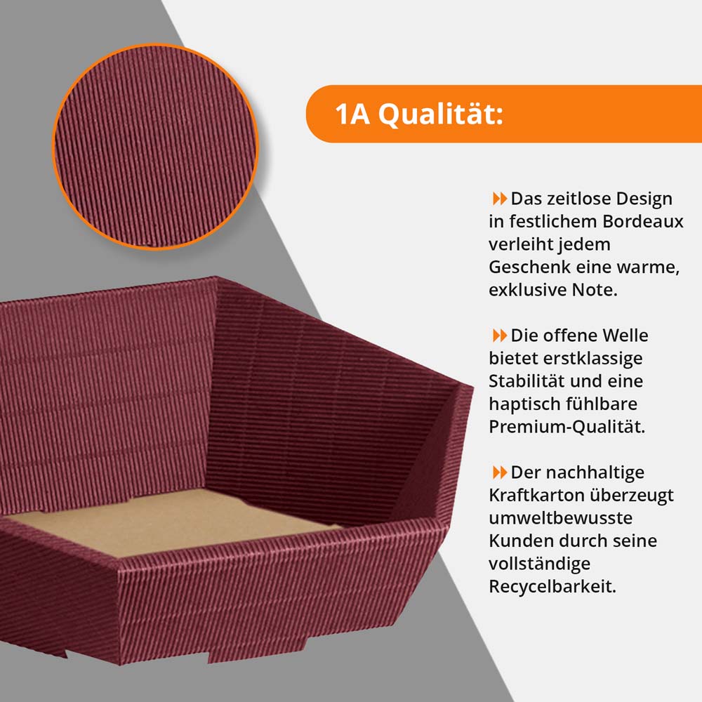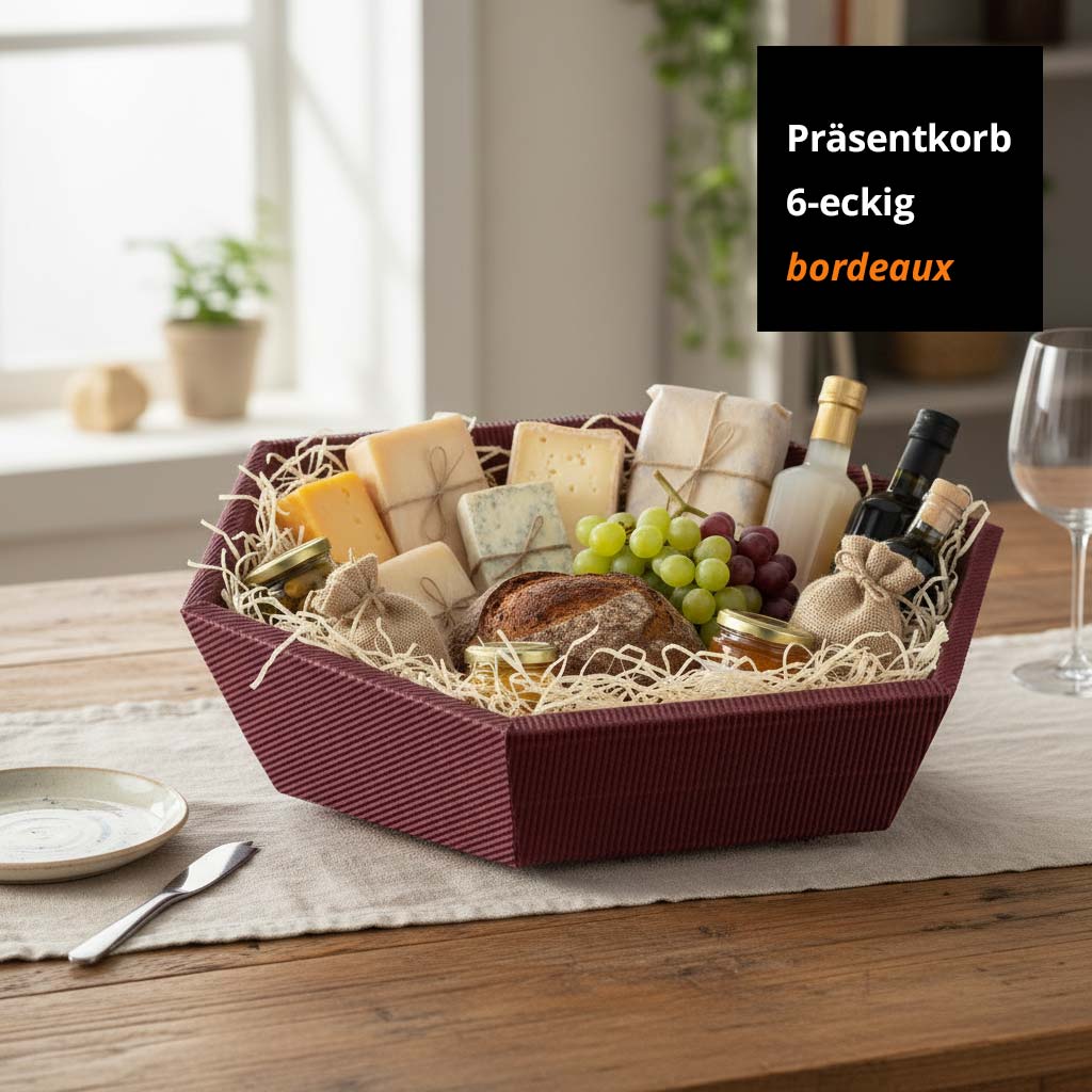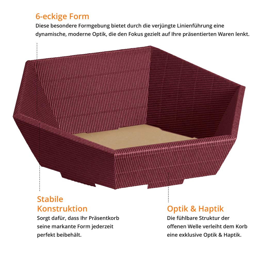 Präsentkorb Geschenkkorb 6-Eck, offene Welle, bordeaux
