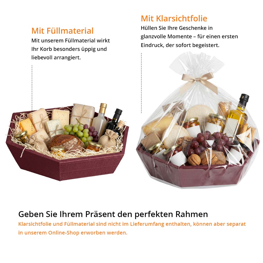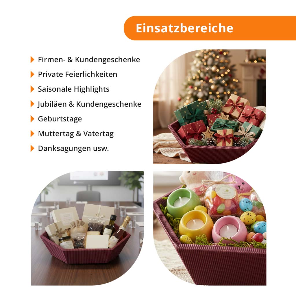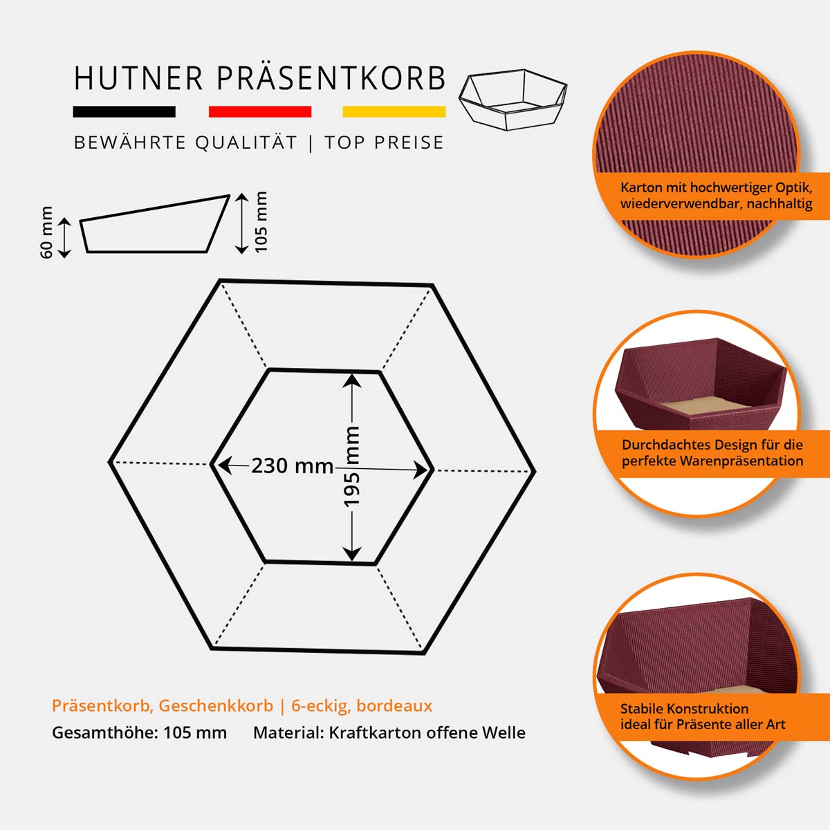 Präsentkorb Geschenkkorb 6-Eck, offene Welle, bordeaux
