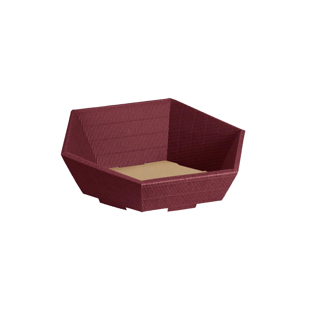 Präsentkorb Geschenkkorb 6-Eck, offene Welle, bordeaux, klein