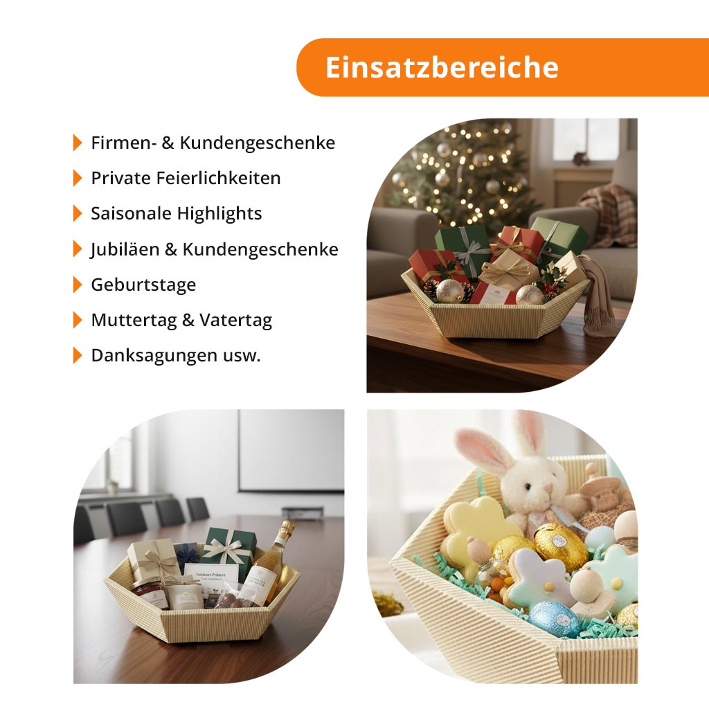 • Hohe Stabilität und tolle Optik durch Karton mit offener Welle
