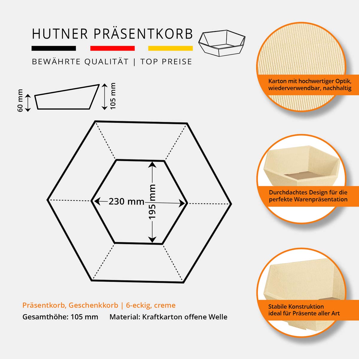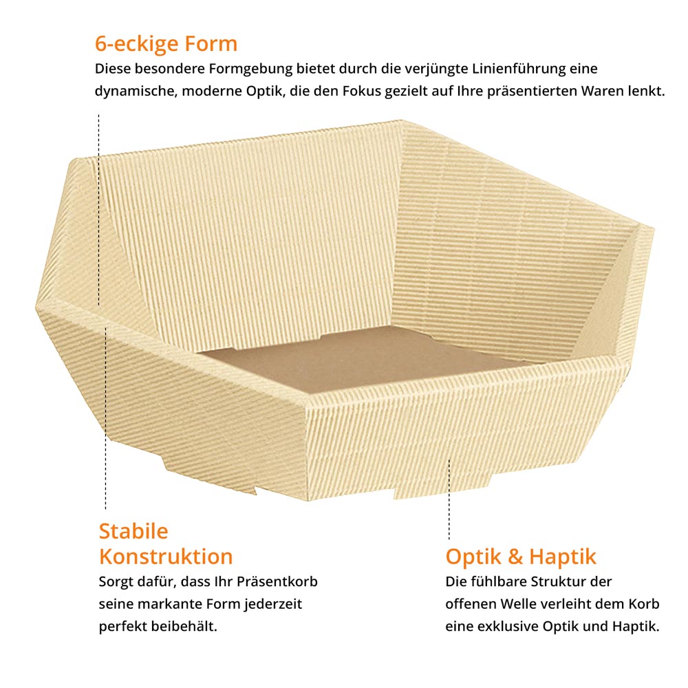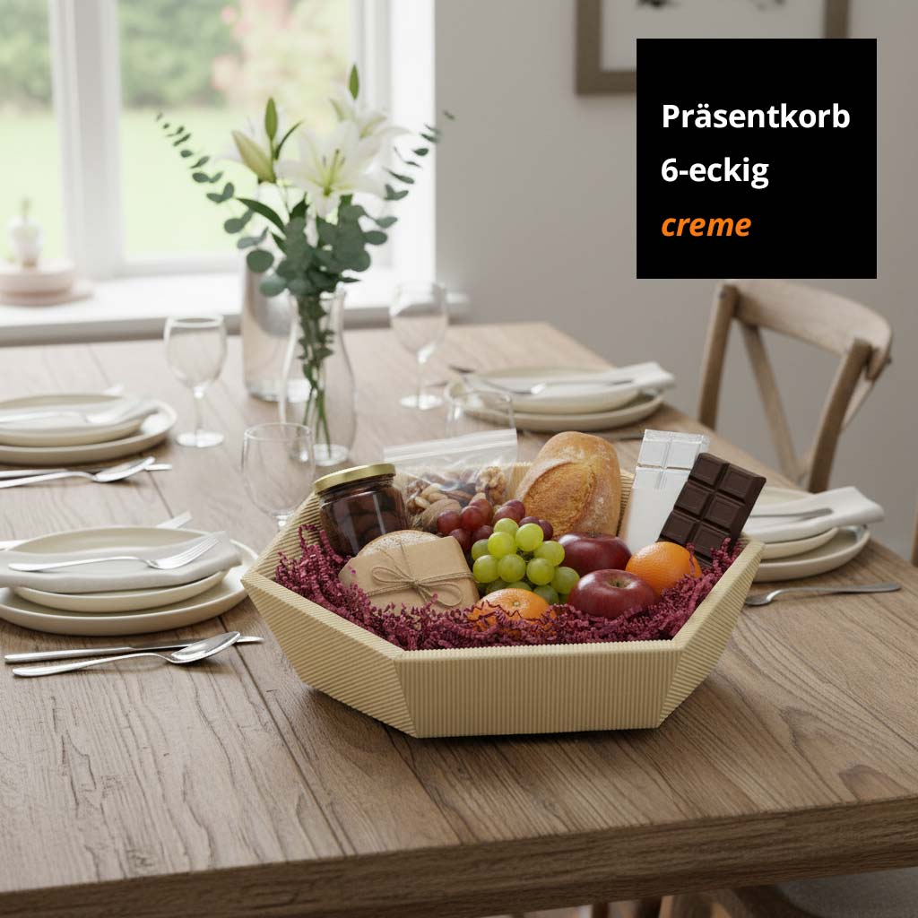 Präsentkorb Geschenkkorb 6-Eck, offene Welle, creme