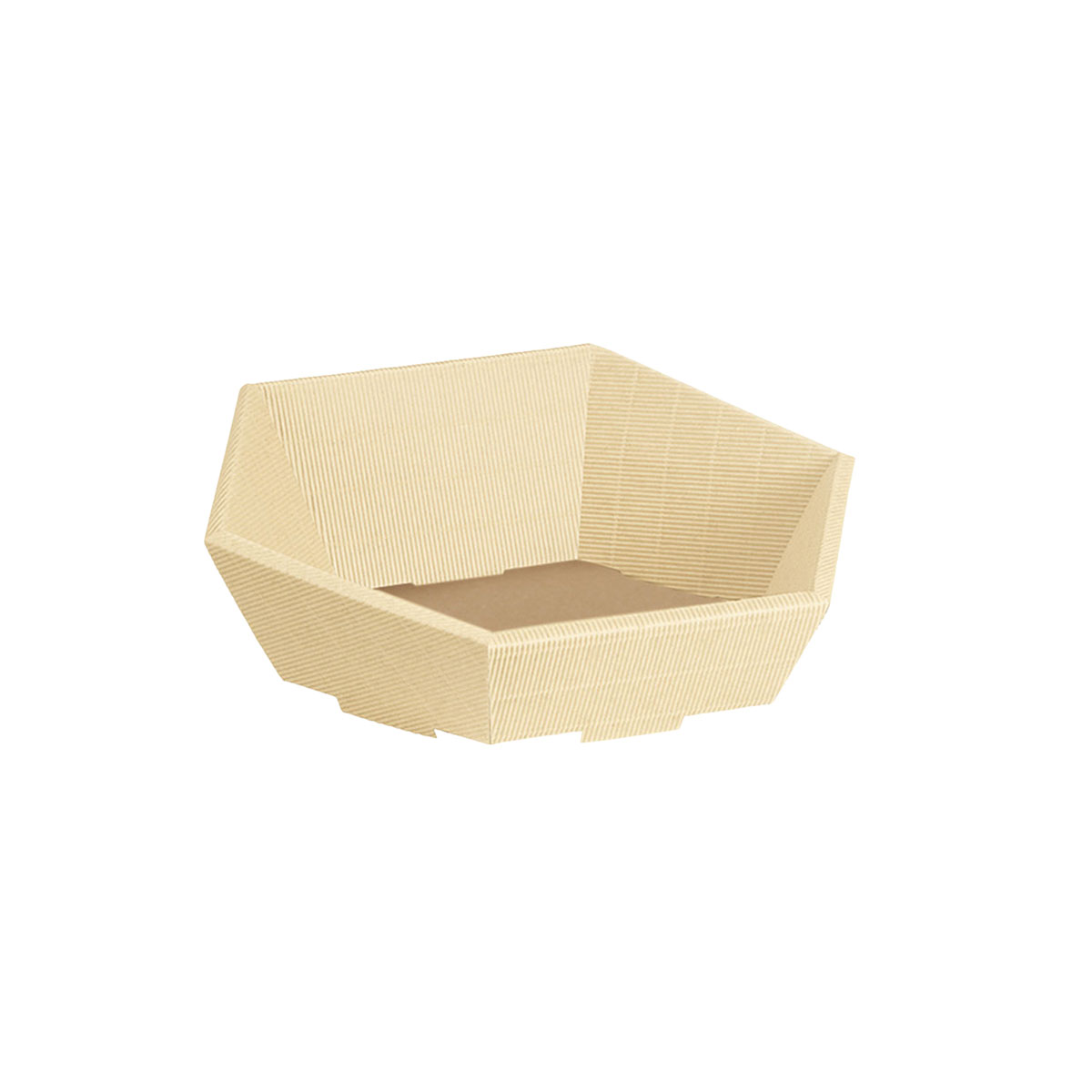 Präsentkorb Geschenkkorb 6-Eck, offene Welle, creme, klein