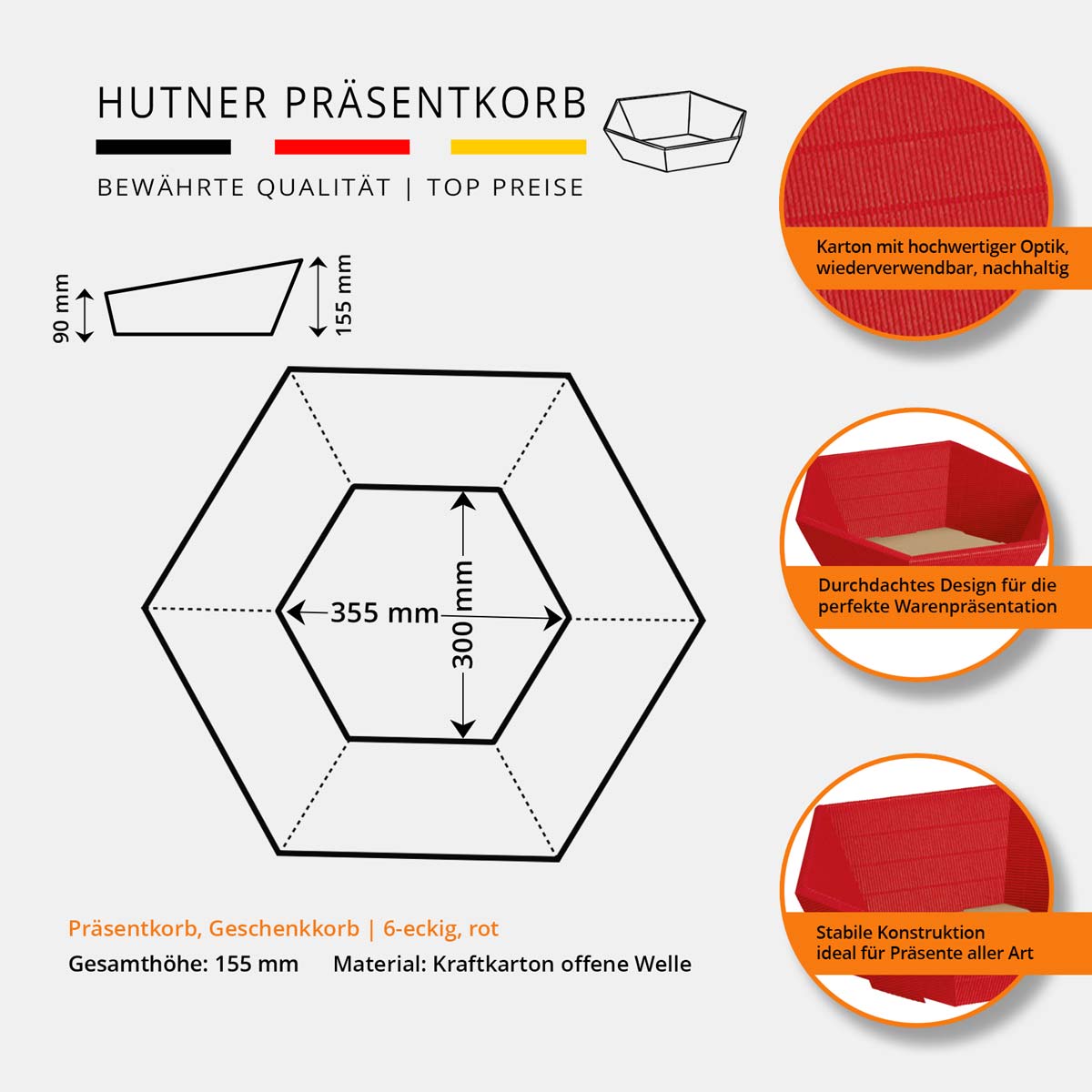 Präsentkorb Geschenkkorb 6-Eck, offene Welle, rot, groß