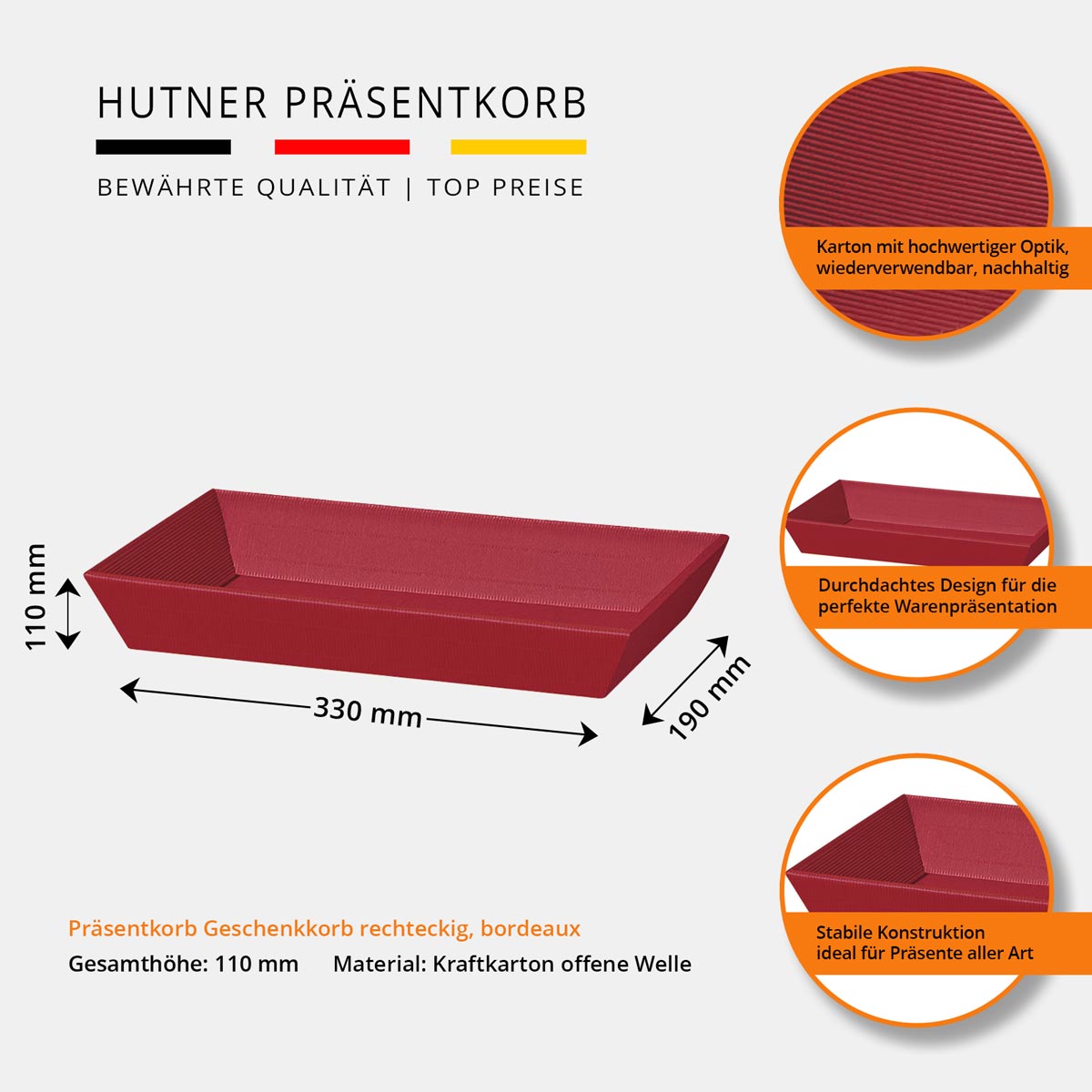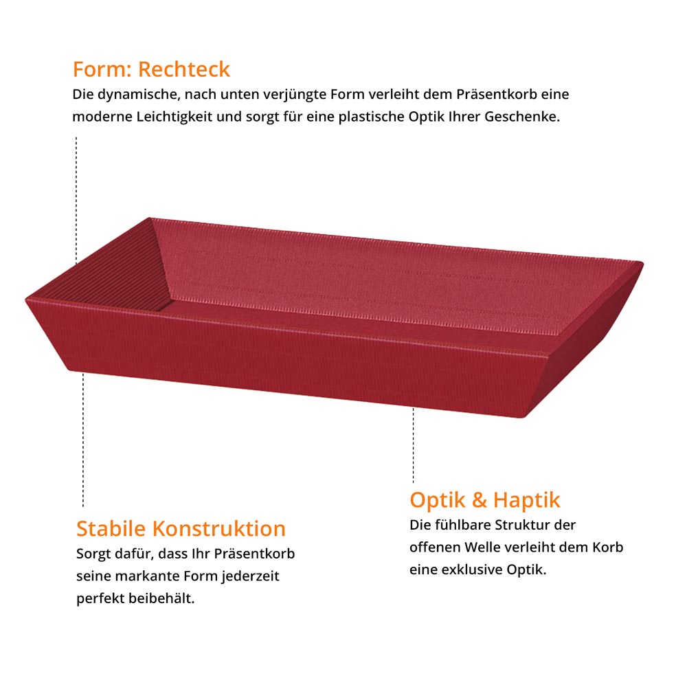 Präsentkorb Geschenkkorb rechteckig, offene Welle bordeaux, flach