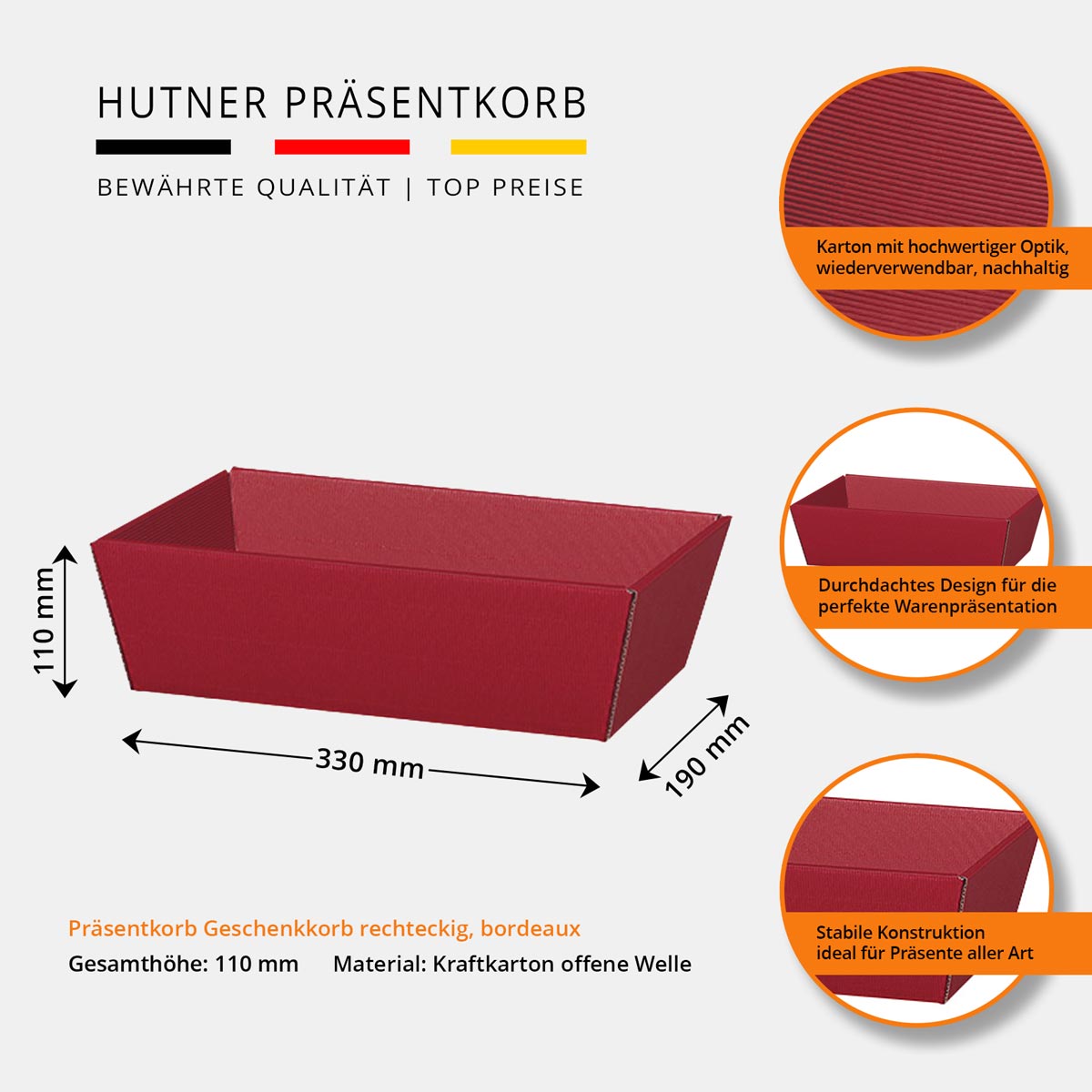 - Hohe Stabilität und tolle Optik durch hochwertigen Kraftkarton