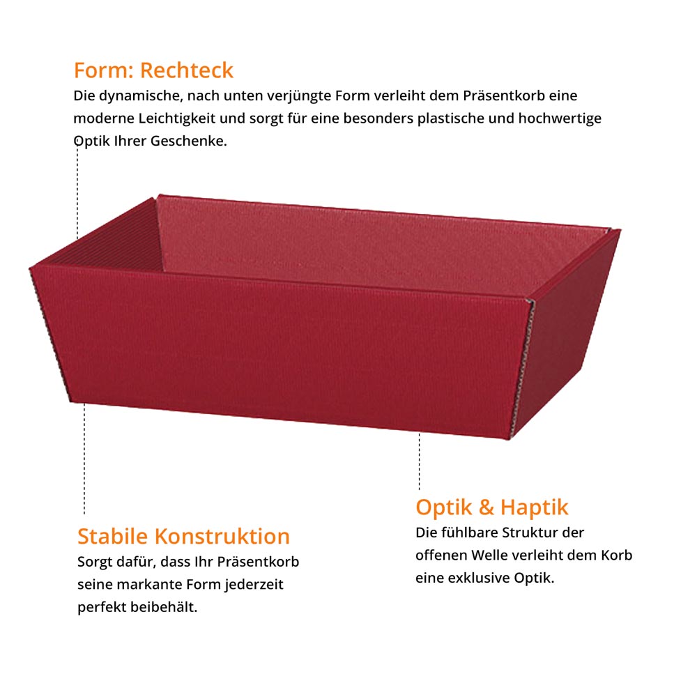 Präsentkorb Geschenkkorb rechteckig, offene Welle, bordeaux