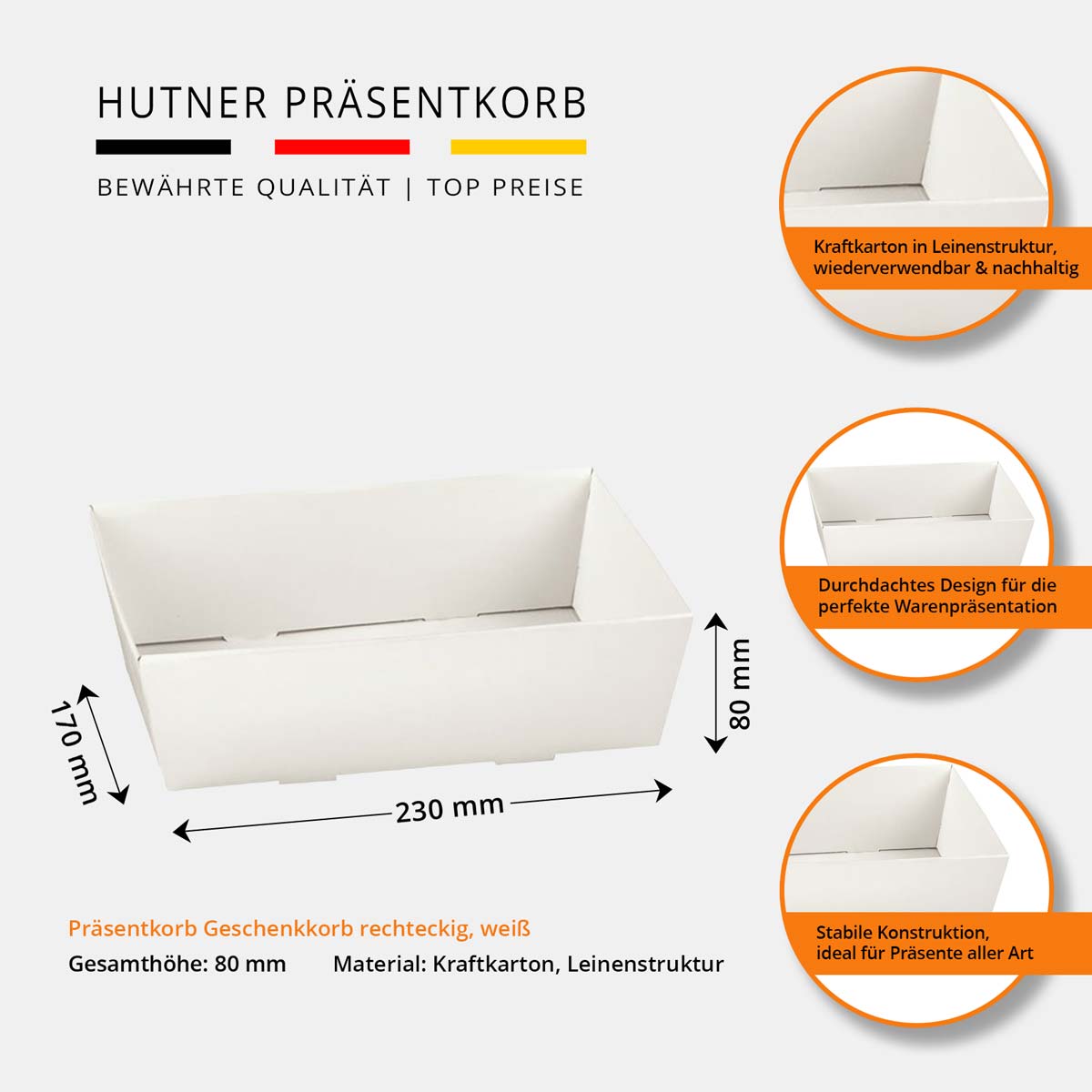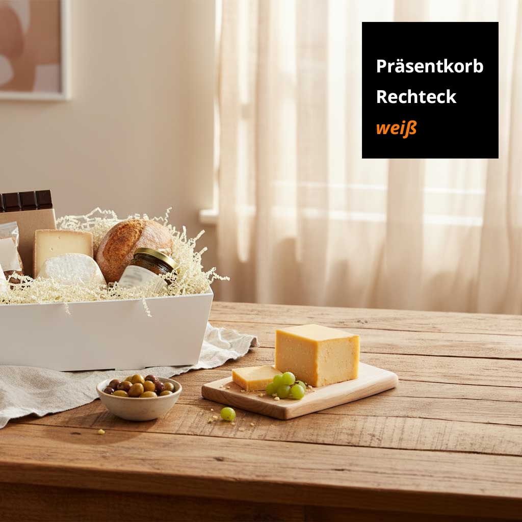 Präsentkorb Geschenkkorb Fibra Leinenstruktur, rechteckig - Klein - , weiß
