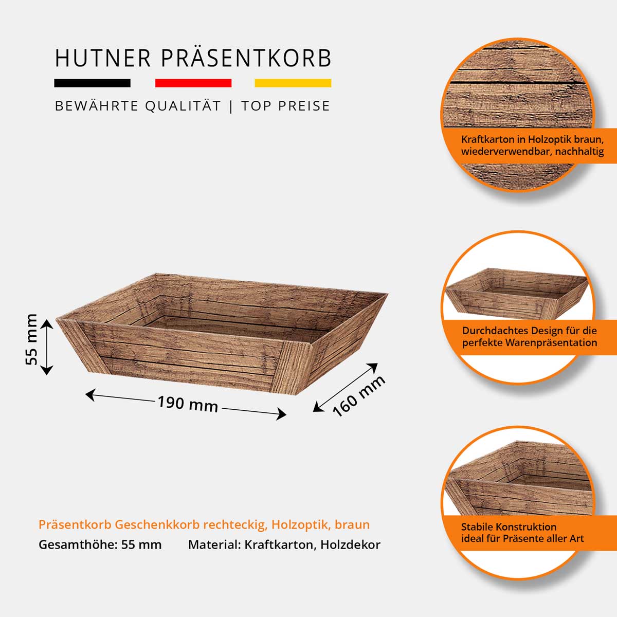 - Hohe Stabilität und tolle Optik durch hochwertigen Kraftkarton