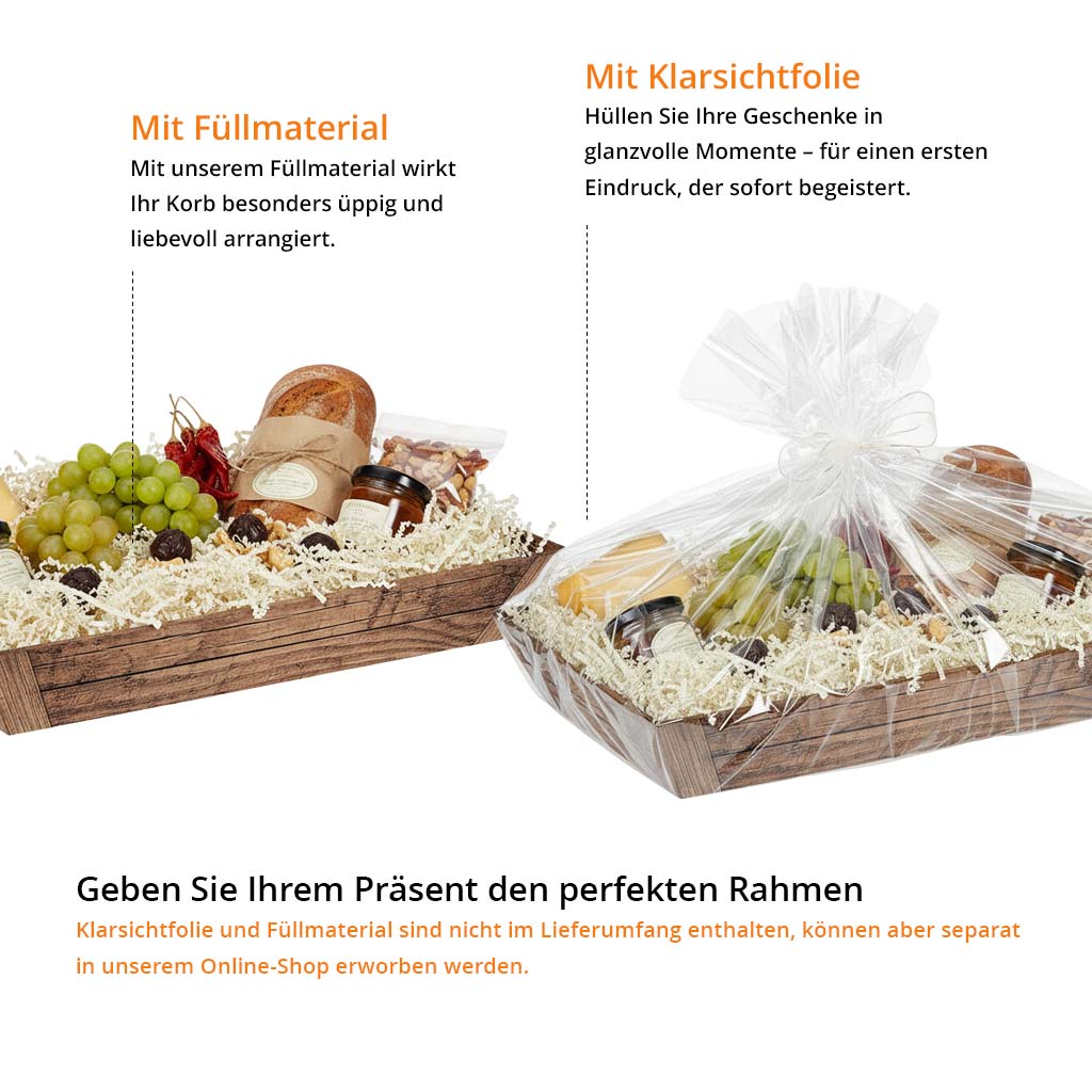 Präsentkorb Geschenkkorb Holzoptik braun flach, rechteckig, klein