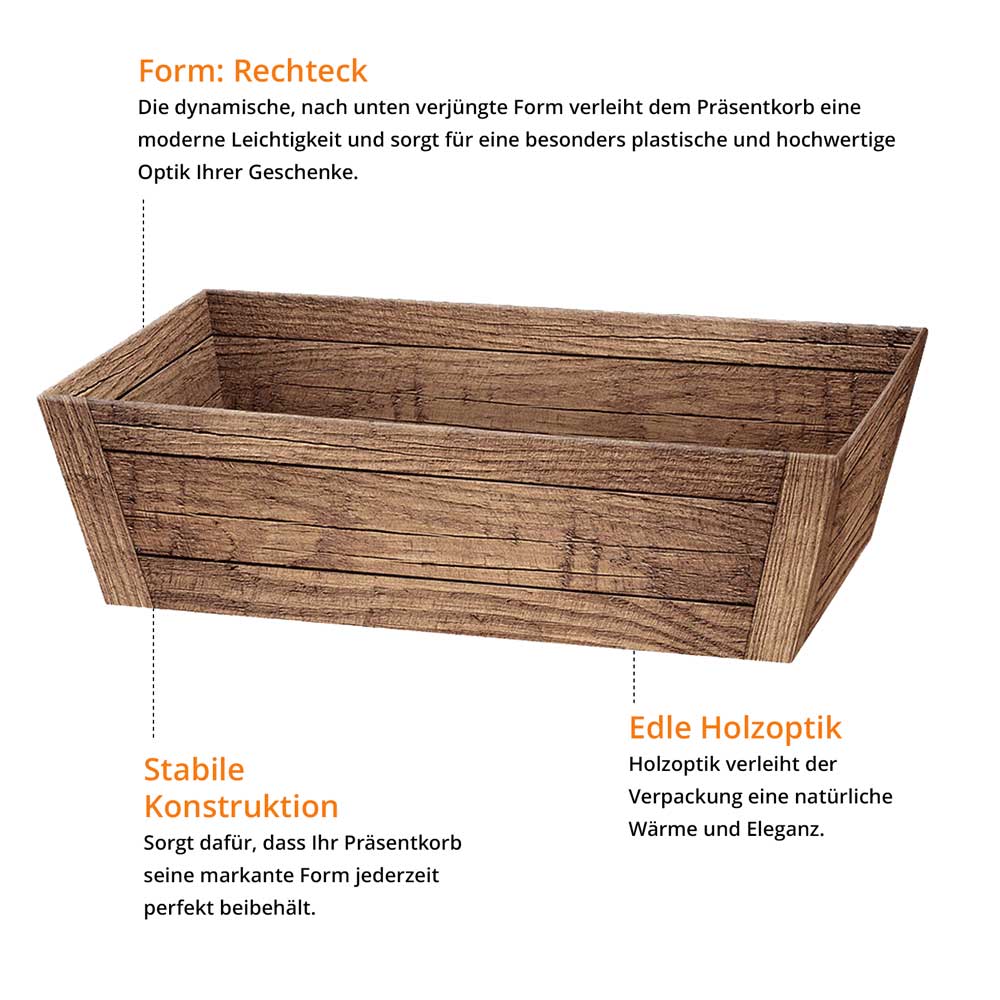Präsentkorb Geschenkkorb rechteckig, Holzoptik, natur braun