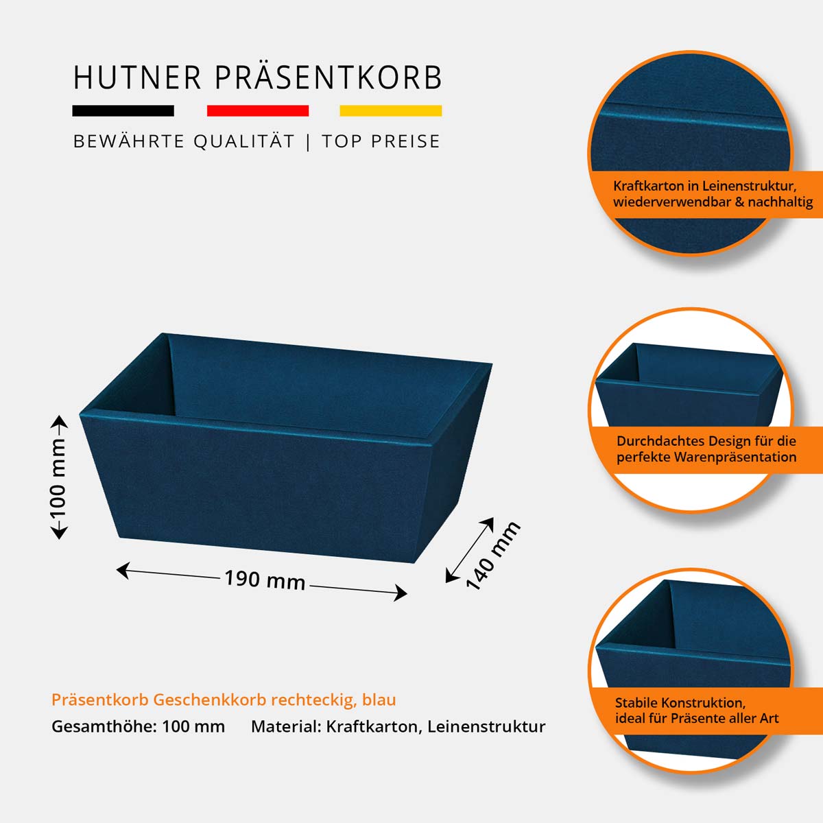Präsentkorb Geschenkkorb rechteckig, Leinenstruktur, - klein -