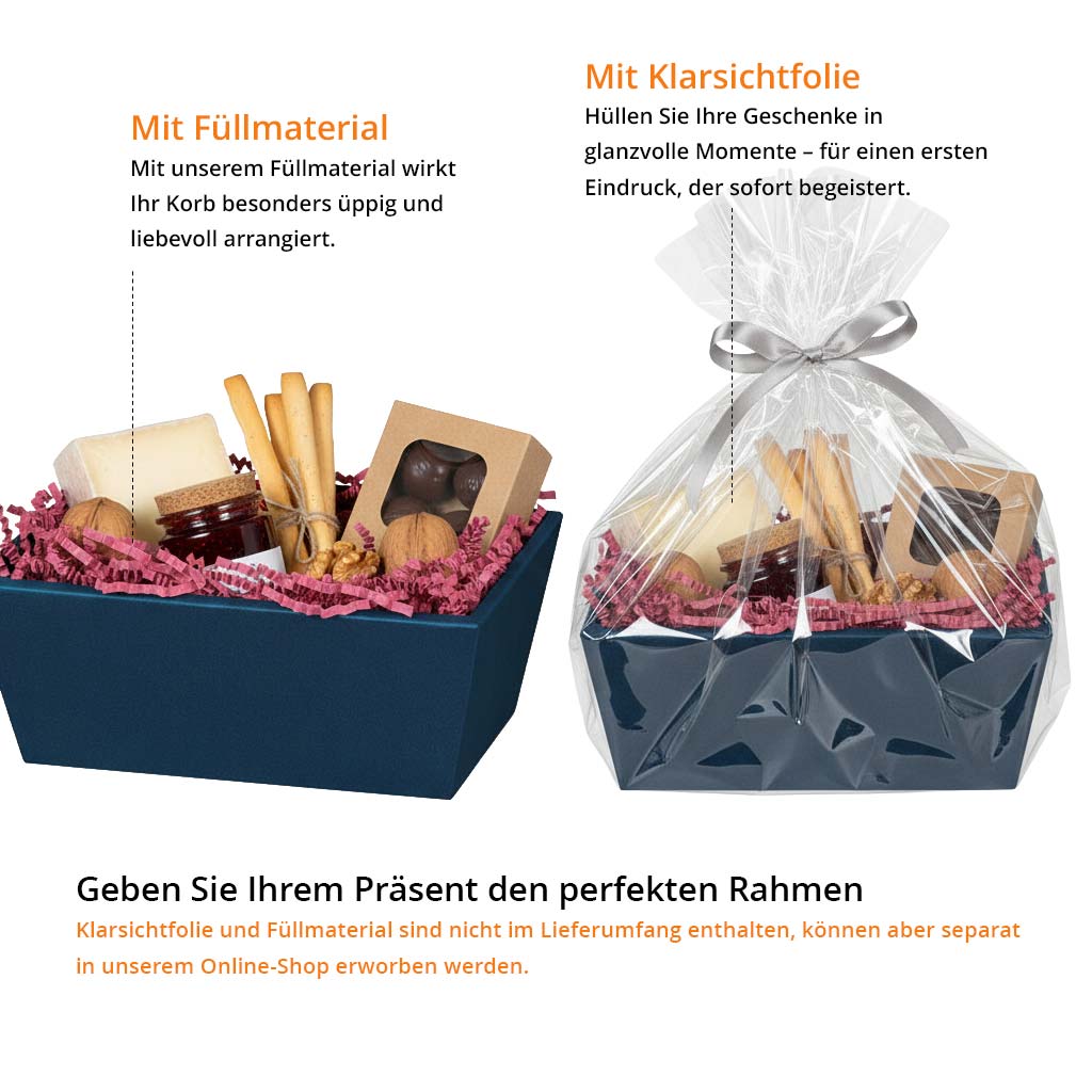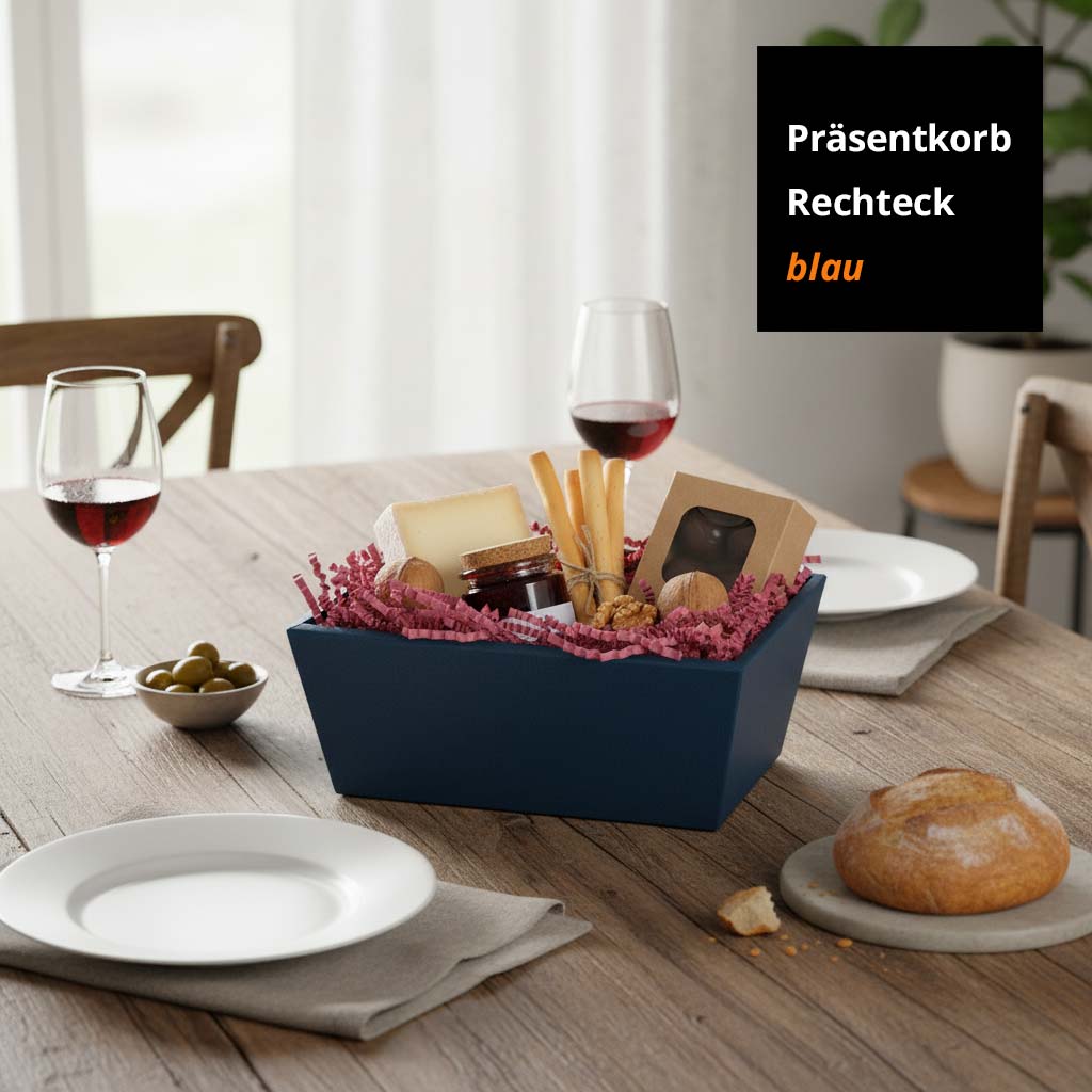 Präsentkorb Geschenkkorb Leinenstruktur, rechteckig - Klein - , blau