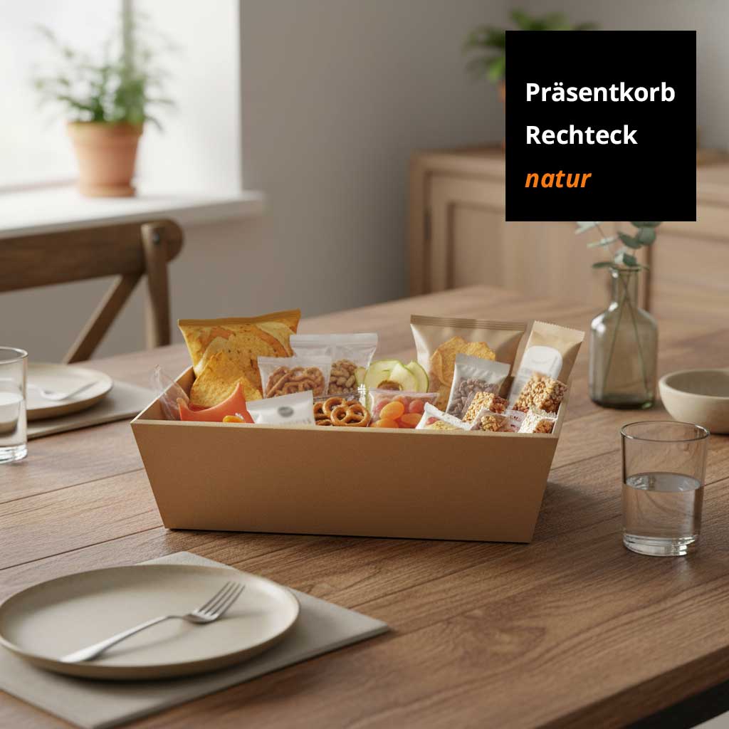 Präsentkorb Geschenkkorb Leinenstruktur, rechteckig - Mittel - , natur