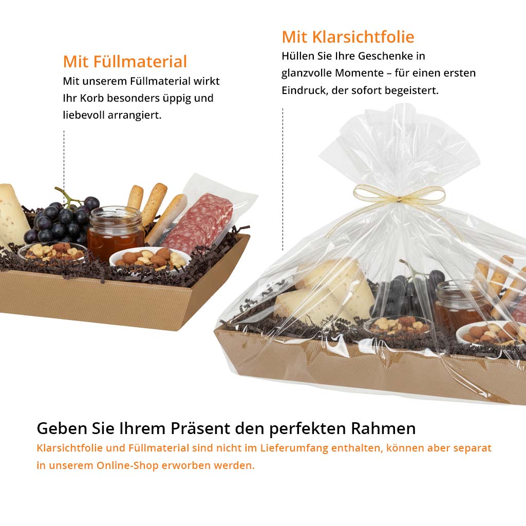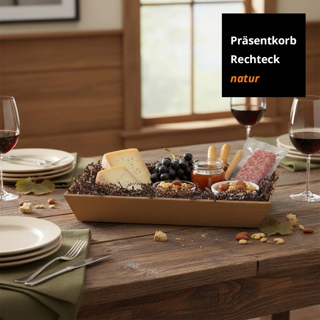 Präsentkorb Geschenkkorb natur braun flach, rechteckig, klein