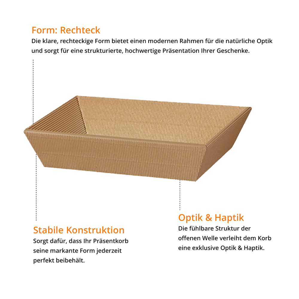 Präsentkorb Geschenkkorb rechteckig, offene Welle natur, flach