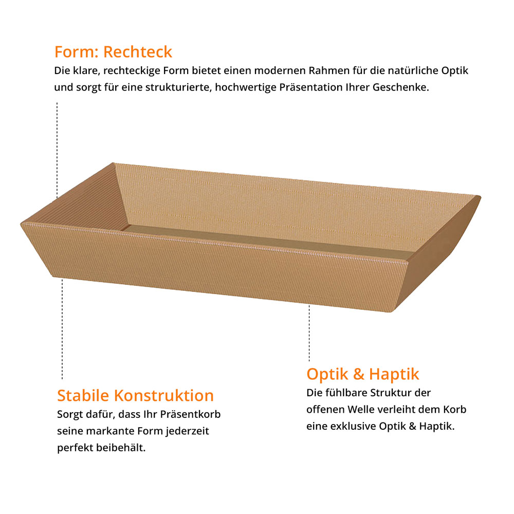 Präsentkorb Geschenkkorb rechteckig, offene Welle natur, flach