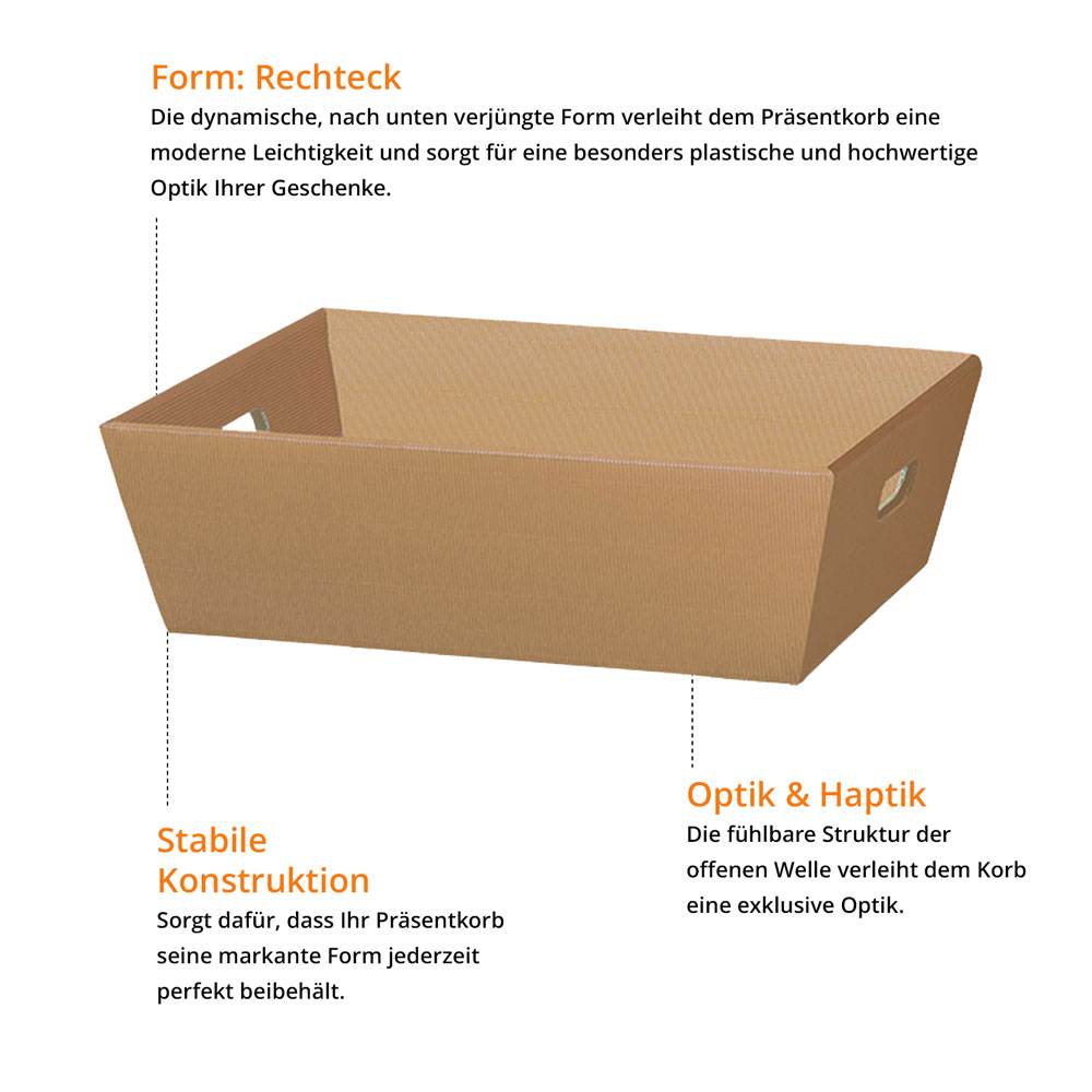 - Hohe Stabilität und tolle Optik durch hochwertigen Kraftkarton in offener Welle