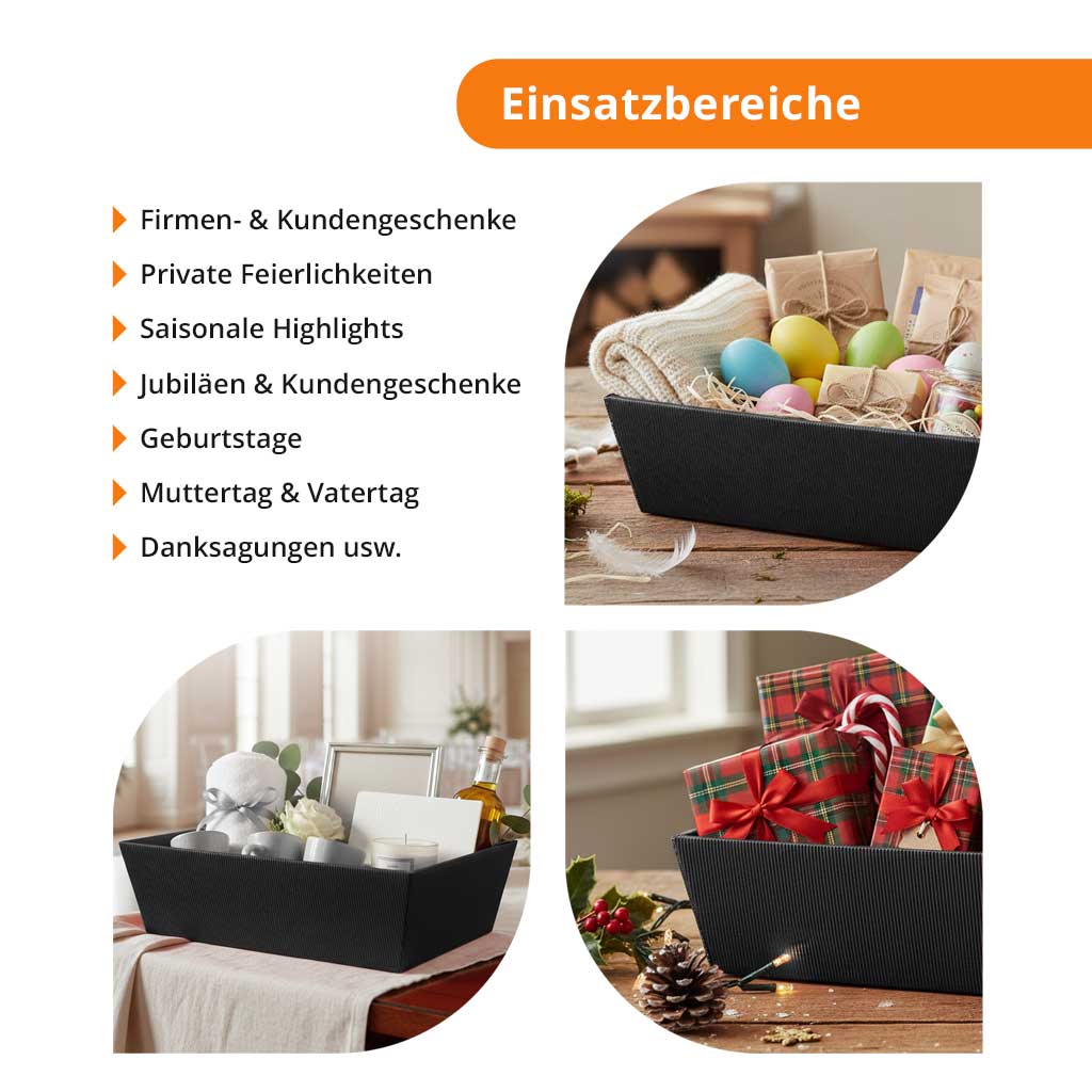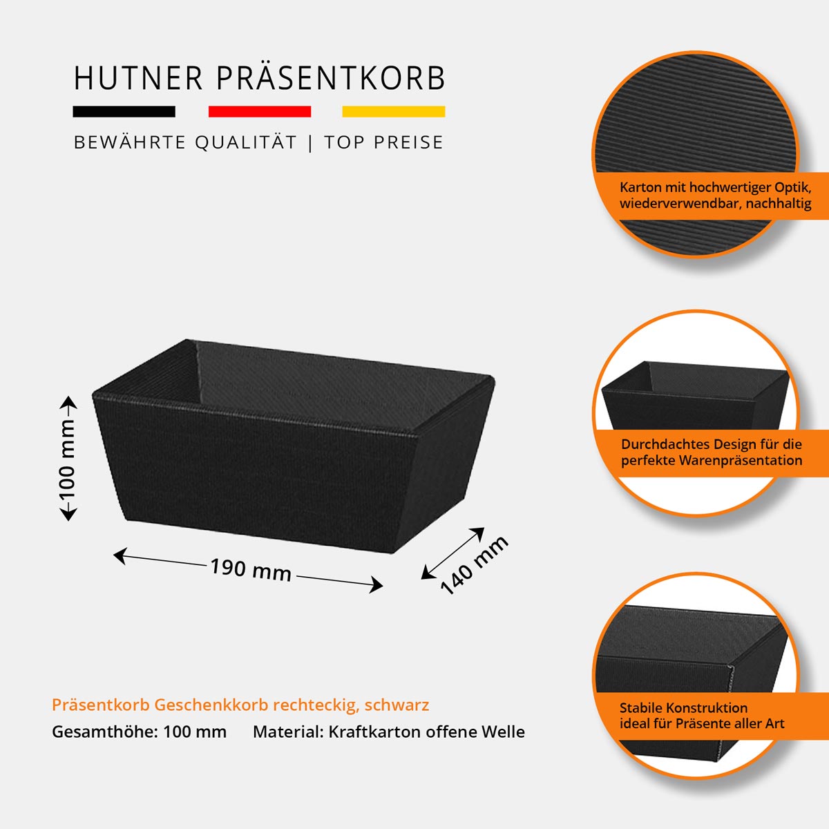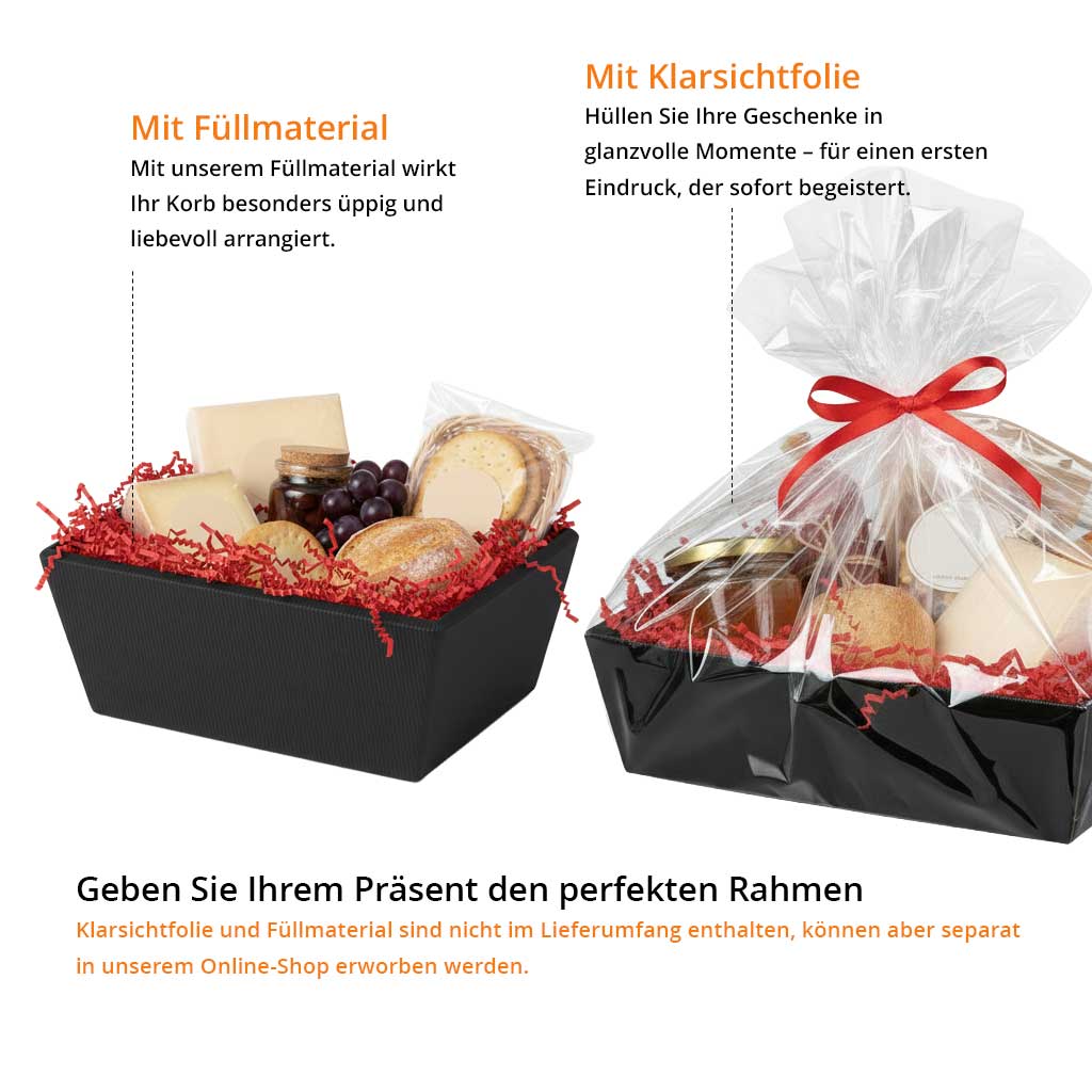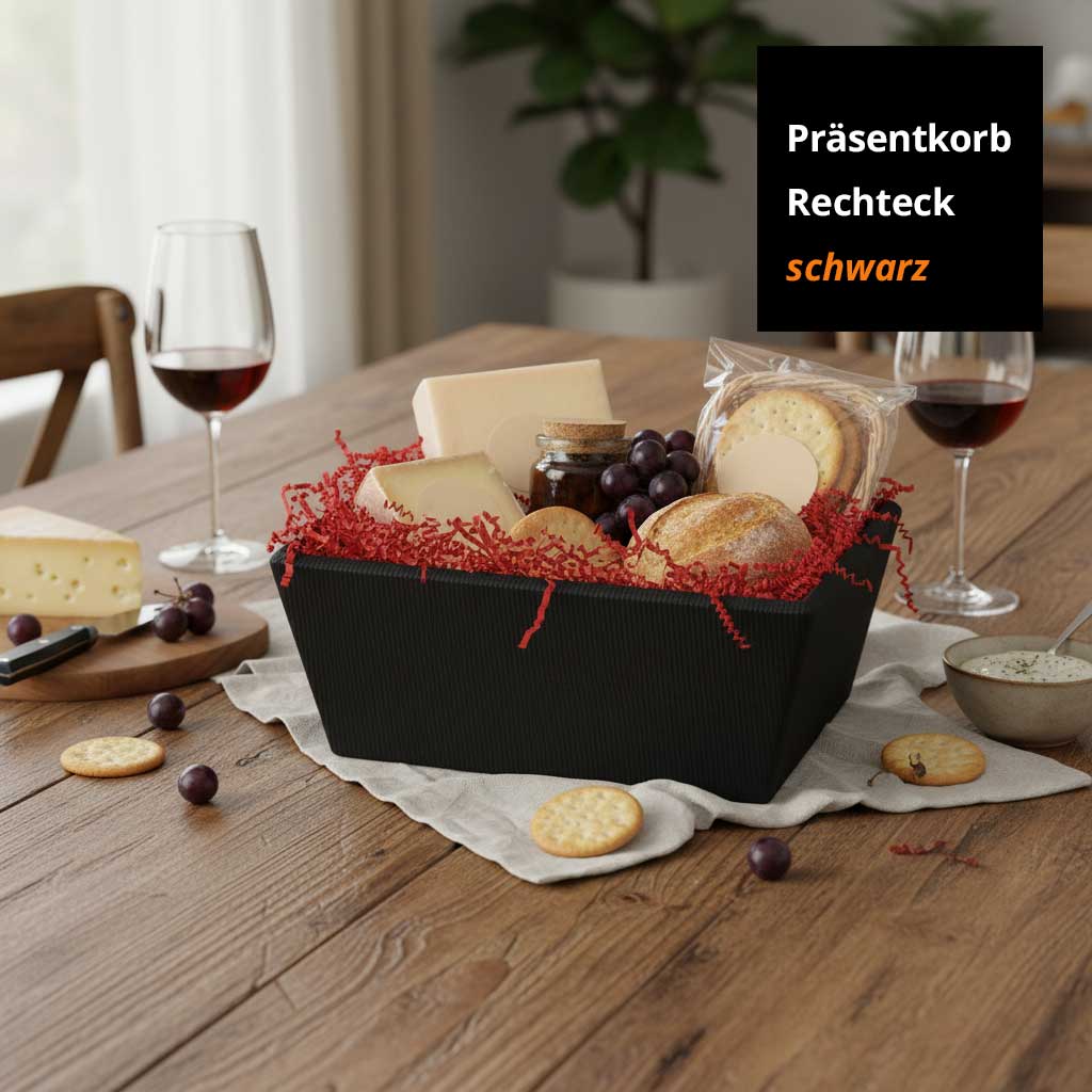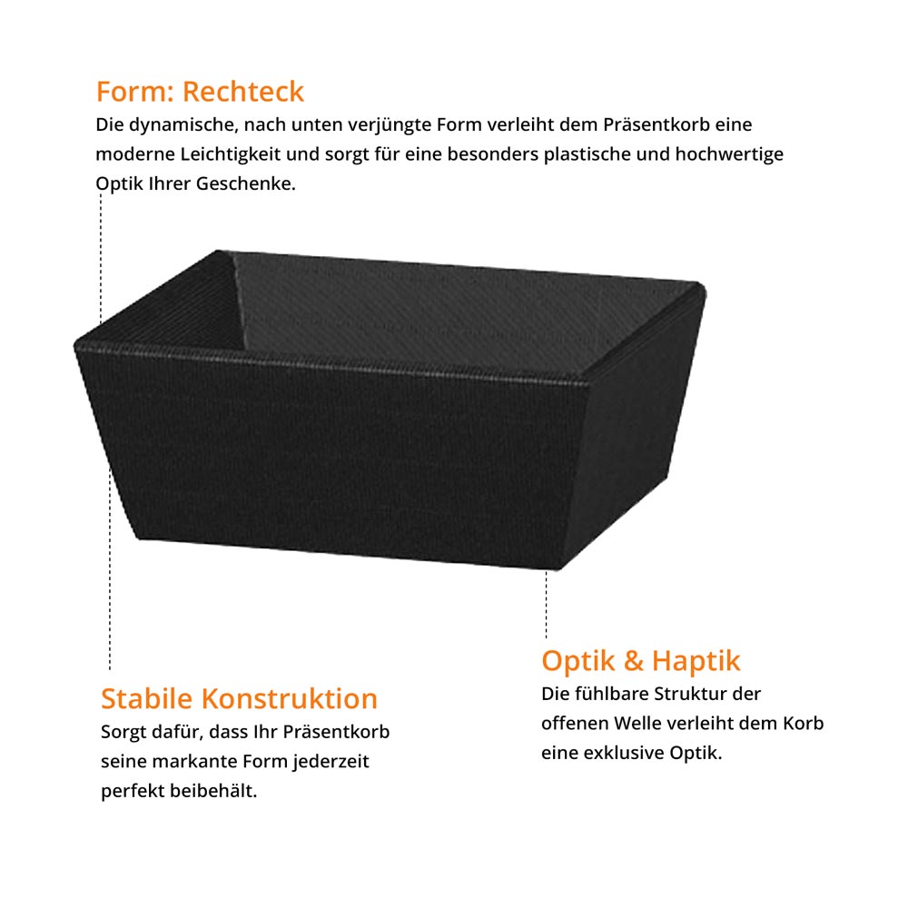 Präsentkorb Geschenkkorb rechteckig, offene Welle, schwarz