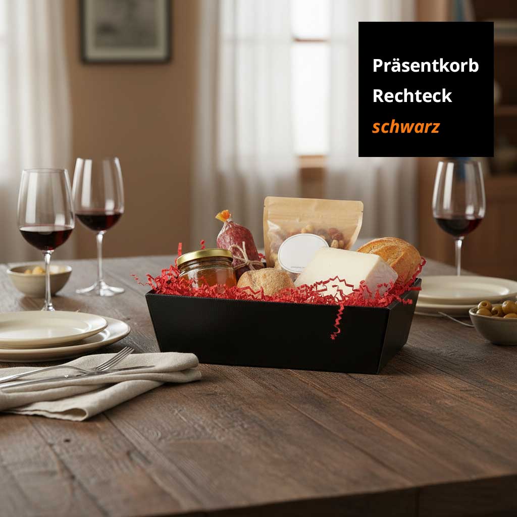 Präsentkorb Geschenkkorb schwarz offene Welle, rechteckig, mittel