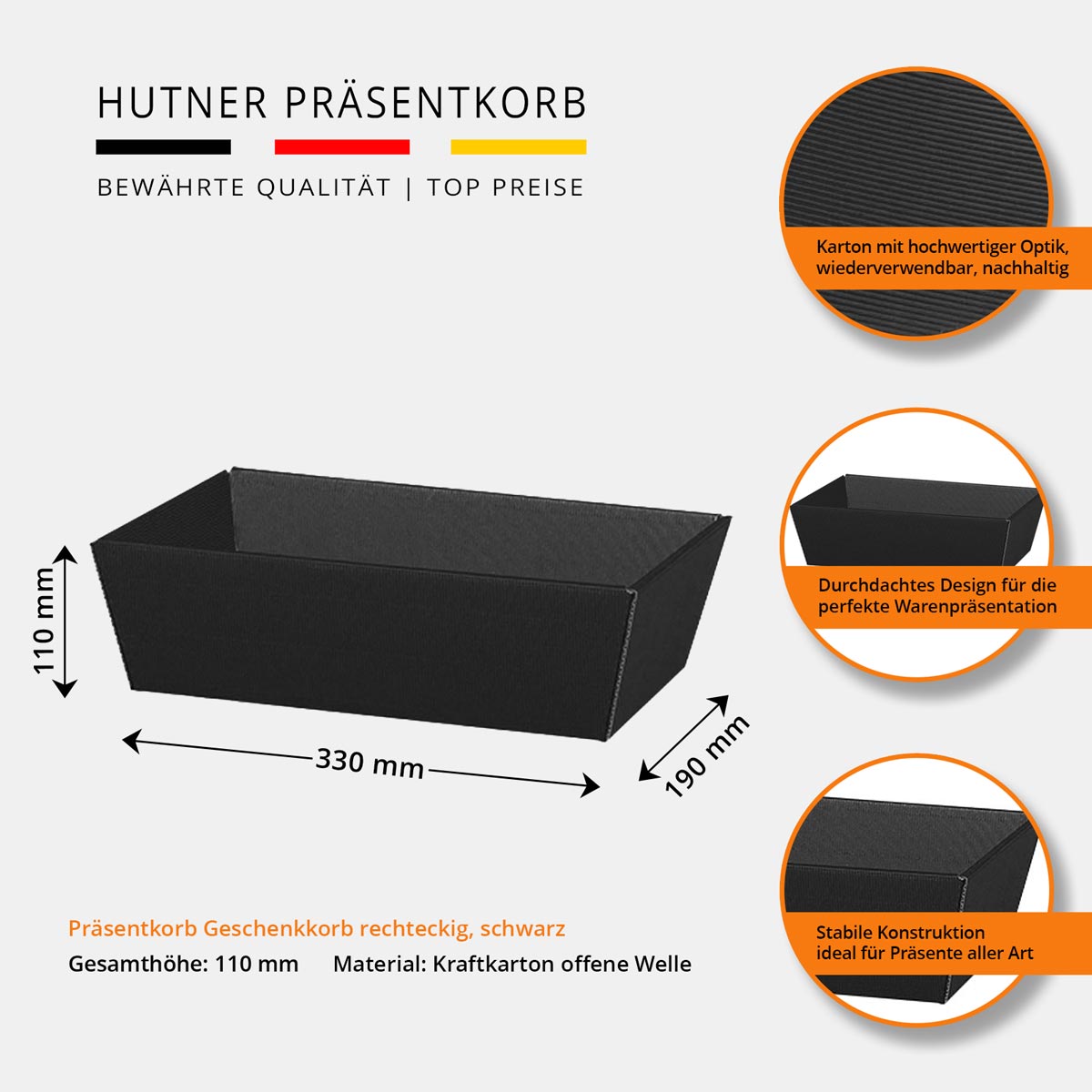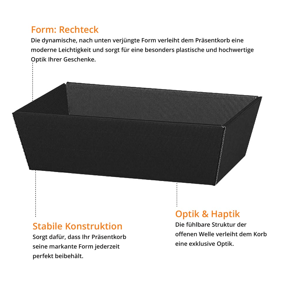 Präsentkorb Geschenkkorb rechteckig, offene Welle, schwarz